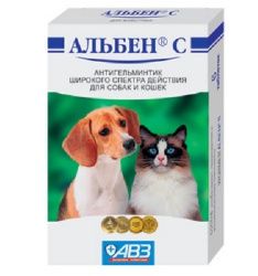 Альбен С обладает широким спектром антгельминтного действия на все стадии развития круглых и ленточных гельминтов, в том числе Toxocara canis, Toxocara cati, Toxascaris leonina, Uncinaria stenocephala, Ancylostoma caninum, Taenia spp., Echinococcus granulosus, Echinococcus multilocularis, Dipylidium caninum, Diphyllobothrium latum, Multiceps multiceps, Mesocestoides spp., паразитирующих у мелких домашних животных. Механизм действия входящих в состав препарата альбендазола и празиквантела основан на нарушении транспорта глюкозы и микротубулярной функции паразита, угнетении активности фумарат-редуктазы и синтеза АТФ, повышении проницаемости клеточных мембран, что приводит к нарушению нервно-мышечной иннервации, параличу и гибели паразита. Альбен С относится к группе малотоксичных для теплокровных животных соединений, в рекомендуемых дозах не оказывает эмбриотоксического, тератогенного и сенсибилизирующего действия. Хорошо переносится собаками и кошками разных пород и возрастов.