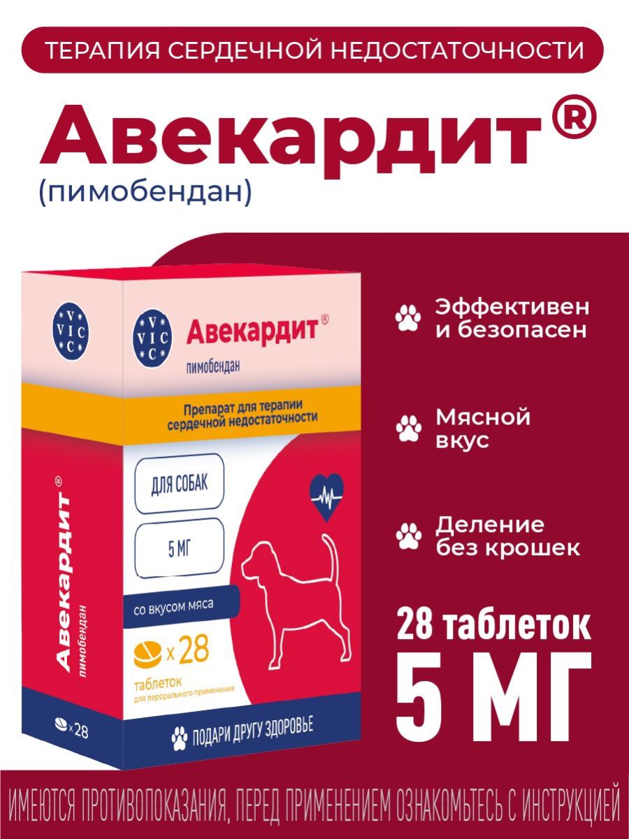 Читать все статьиАвекардит 5 мг. д/средних собак №28 таб.ВИК