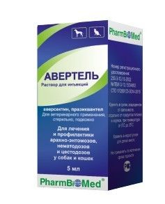 Авертель - комплексный противопаразитарный лекарственный препарат системного действия, в состав которого входит аверсектин С1 из класса макроциклических лактонов и празиквантел из класса изохинолинов.