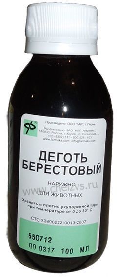 Продукцию животного происхождения, полученную во время и после применения «Дегтя берестового», разрешается использовать без ограничений через 7 суток после последнего применения.