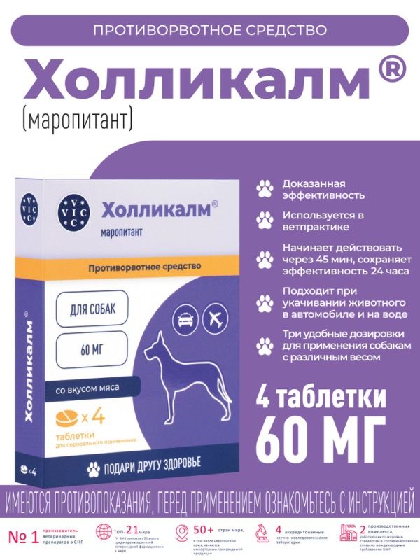 Читать все статьиХолликалм® 60мг, таблетки для собак, коробка 4 табл. ВИК