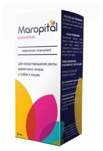 Маропиталь применяют для предотвращения рвоты различного генеза у собак и кошек. Противопоказанием к применению является повышенная индивидуальная чувствительность к компонентам препарата. Препарат следует назначать с осторожностью животным с патологией печени и при сердечной недостаточности. При работе с препаратом Маропиталь следует соблюдать общие правила личной гигиены и техники безопасности, предусмотренные при работе с лекарственными препаратами. По окончании работы руки следует вымыть теплой водой с мылом. При случайном контакте лекарственного препарата с кожей или слизистыми оболочками глаза, их следует промыть большим количеством воды. Людям с гиперчувствительностью к компонентам препарата Маропиталь следует избегать прямого контакта с лекарственным препаратом. В случае появления аллергических реакций или при случайном попадании препарата в организм человека, следует немедленно обратиться в медицинское учреждение (при себе иметь инструкцию по применению препарата или этикетку). Пустые флаконы из-под лекарственного препарата запрещается использовать для бытовых целей, они подлежат утилизации с бытовыми отходами. Лекарственный препарат не следует назначать самкам в период беременности и вскармливания приплода. При необходимости препарат применяют под контролем ветеринарного врача на основании оценки отношения ожидаемой пользы к возможному риску его применения. Запрещается применение препарата щенкам моложе 8-недельного возраста и котятам моложе 16-недельного возраста. Лекарственный препарат вводят собакам и кошкам подкожно в дозе 1 мг/кг массы животного, что эквивалентно 1 мл препарата на 10 кг массы животного, один раз в сутки, не более 5 суток подряд. При применении препарата Маропиталь в соответствии с настоящей инструкцией побочных явлений и осложнений у собак и кошек, как правило, не наблюдается. В случае появления аллергических реакций использование препарата прекращают и назначают антигистаминные средства и симптоматическое лечение. При введении возможна болевая реакция. Симптомы передозировки лекарственного препарата не установлены. Маропиталь может применяться в составе комплексной терапии с другими патогенетическими средствами. Препарат не следует назначать одновременно с блокаторами кальциевых каналов, так как маропитант имеет сродство к кальциевым каналам. Особенностей действия при первом приеме препарата и его отмене не выявлено. Следует избегать нарушений режима дозирования препарата, так как это может привести к снижению терапевтической эффективности. В случае пропуска очередной дозы курс применения препарата необходимо возобновить как можно скорее в предусмотренной инструкцией режиме дозирования. Маропиталь не предназначен для применения продуктивным животным