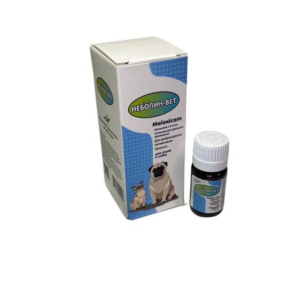 Неболин-вет это суспензия для орального применения (флаконы по 5,10 и 20 мл), предназначенная для собак и кошек в качестве препарата для лечения и профилактики болевого синдрома, в том числе послеоперационных болей, а также воспаления при острых и хронических заболеваниях опорно-двигательного аппарата.