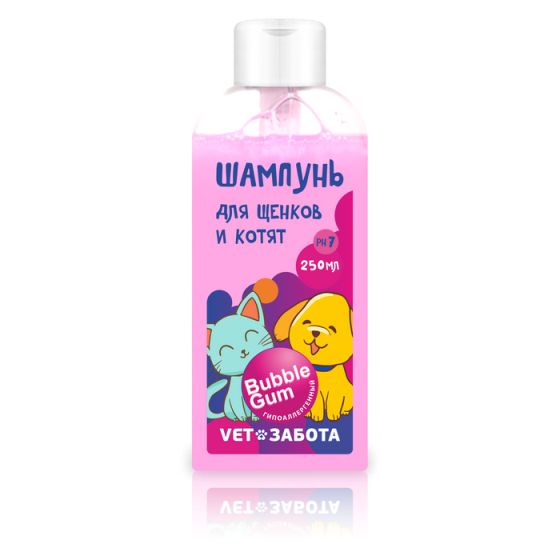 Читать все статьиШампунь VETЗАБОТА Bubble Gum для щенков и котят, 250 мл