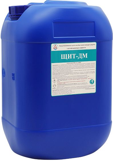 Средство концентрированное беспенное щелочное моющее на основе активного хлора с дезинфицирующим эффектом «ЩИТ-ДМ» изготавливается в соответствии с требованиями ТУ 20.41.32-002-26738950-2018.