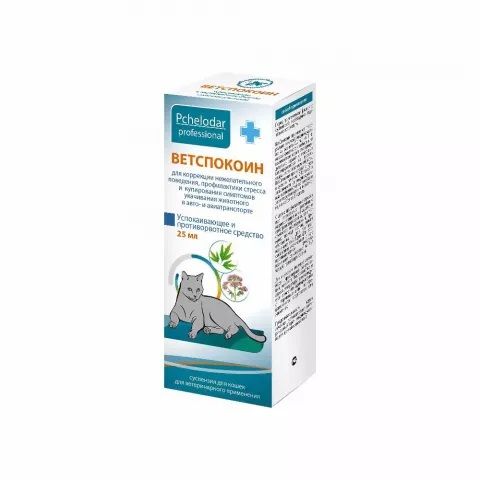 Лекарственный препарат, содержащий в 1 мл действующие вещества: фенибут – 18 мг, экстракт пустырника – 4 мг, экстракт валерианы – 5 мг, прометазин – 2 мг, экстракт пчелиного маточного молочка – 0,5 мг и вспомогательные компоненты. По внешнему виду ВетСпокоин представляет собой однородную суспензию желтого цвета. Выпускают препарат расфасованным по 25 мл в полимерные банки, герметично укупоренные навинчивающимися крышками с контролем первого вскрытия, упакованные в картонные коробки в комплекте с инструкцией по применению.
