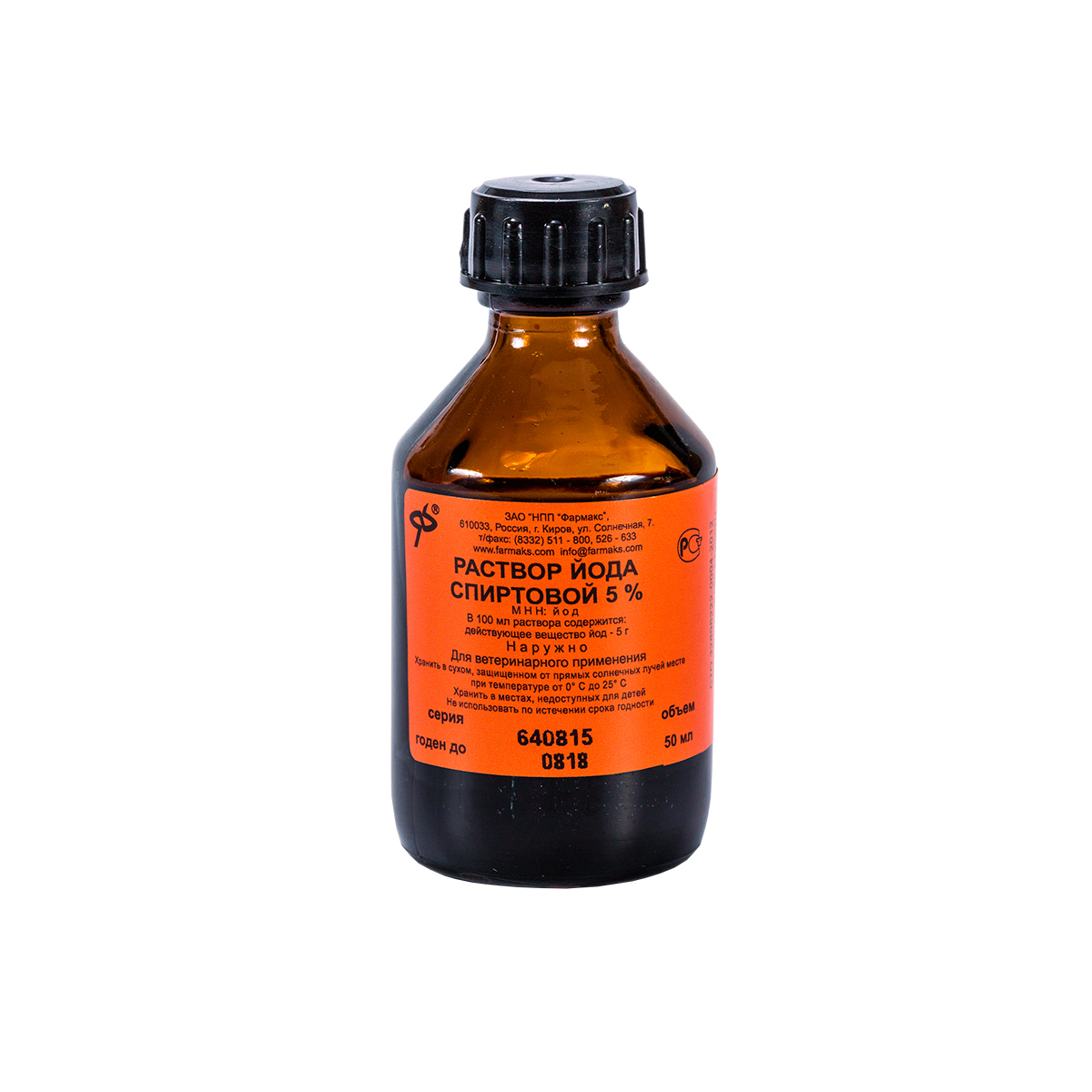 Раствор йода спиртовой 5% - антисептическое средство для животных, предназначено:
